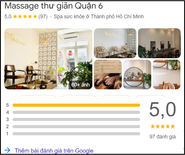 Nếu quá bận rộn và chưa nắm rõ được thuật toán Google, chủ spa có thể thuê Dịch vụ đánh giá Google Map spa để tiết kiệm thời gian và tắng hiệu quả mà chi phí lại rẻ