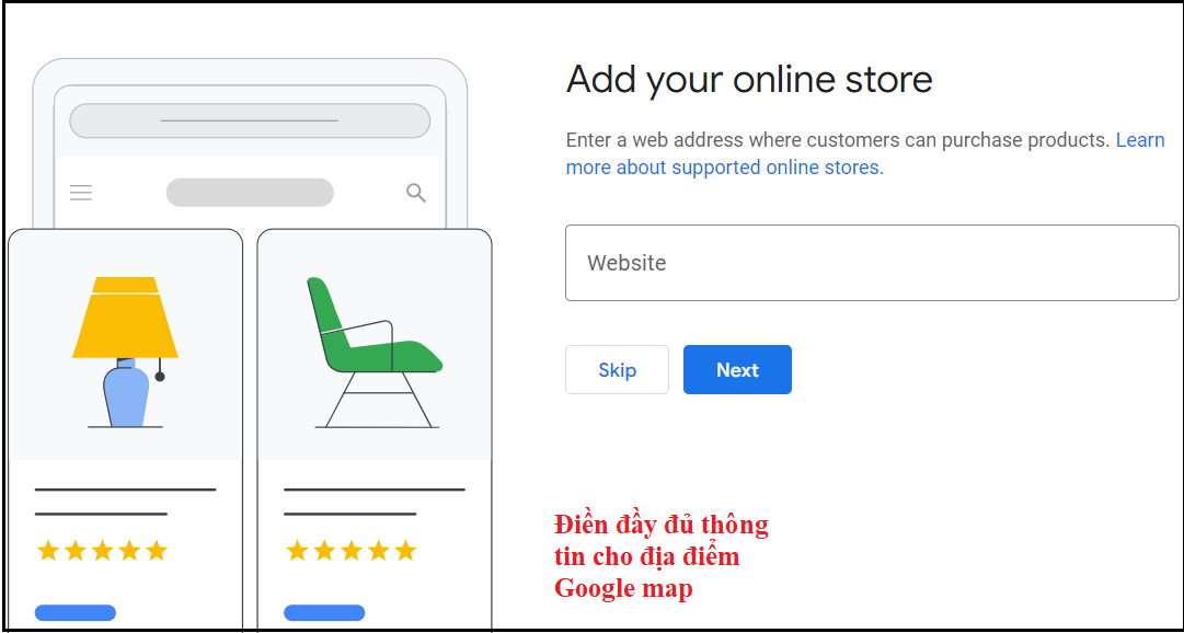 - Sau đó lần lượt điền tất cả các thông tin mà Google yêu cầu như số điện thoại, địa chi (lưu ý địa chỉ cần để đúng chính xác vị trí địa điểm tiệm kính), website, email,…